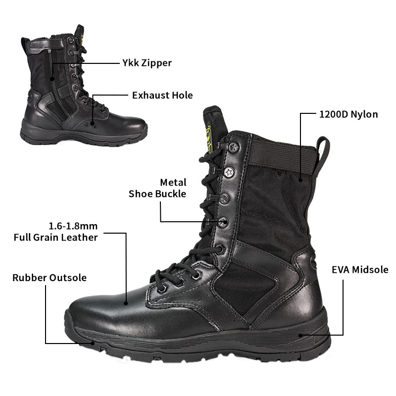 Constructum ad personas militares et fanaticos velit, The Full Purgamentum Outsole Police Tabernus praebent commodam, vestis circum aptam cum gravi stabilitate in agros asperos. Lingua iactata obstantia custodit et in sitas permanat, dum durabile sequebatur et nylon superior ad duras condiciones stat. YKK zipper facit facilem in-et-off, sic in missione praemisit focused manere potes.