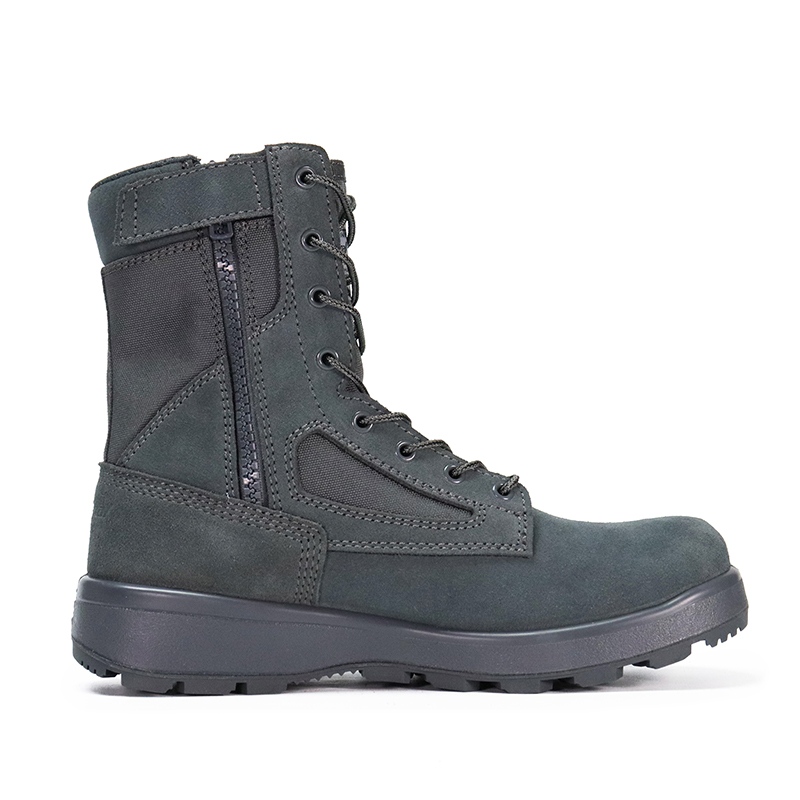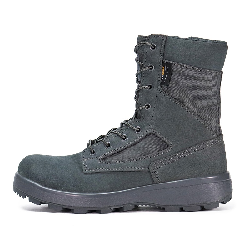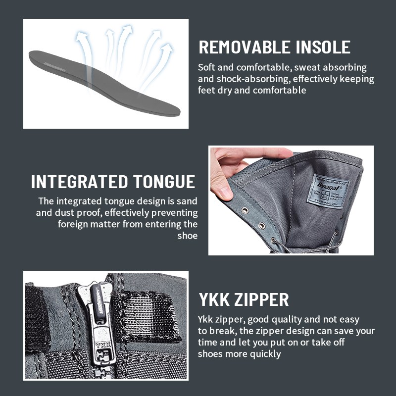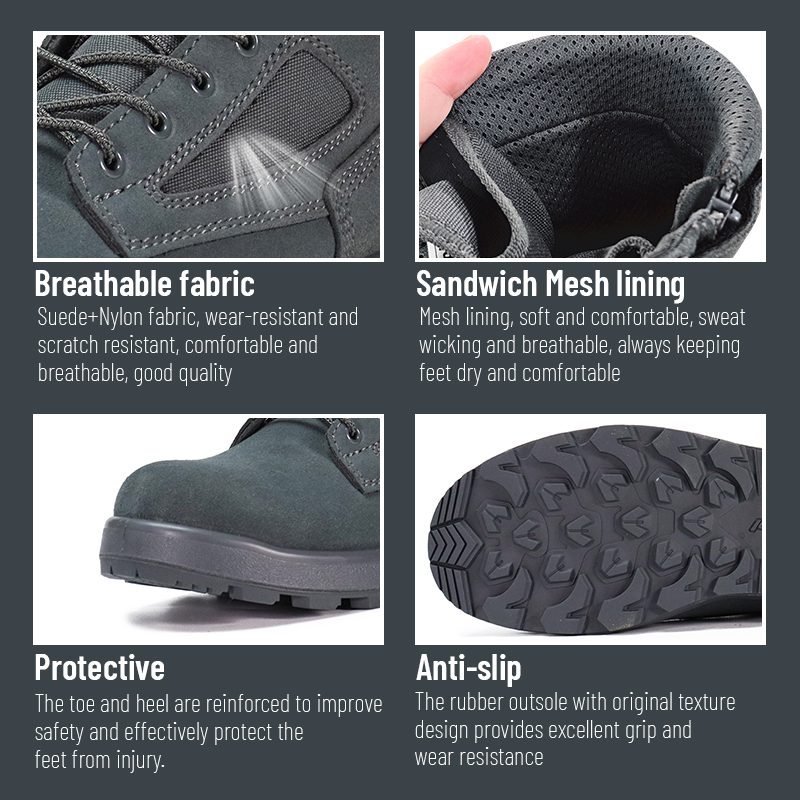 Hoc calceamentum notat superiorem fabricatum ex premium corio pleno grano et fabricae nylon. Compositum praebet eximiam flexibilitatem, durabilitatem, respirabilitatem, et consolationem, dum etiam resistens exasperat. Non solum pedes tuos custodit, sed etiam interiorem ambitum siccum constanter fovet et fovet.